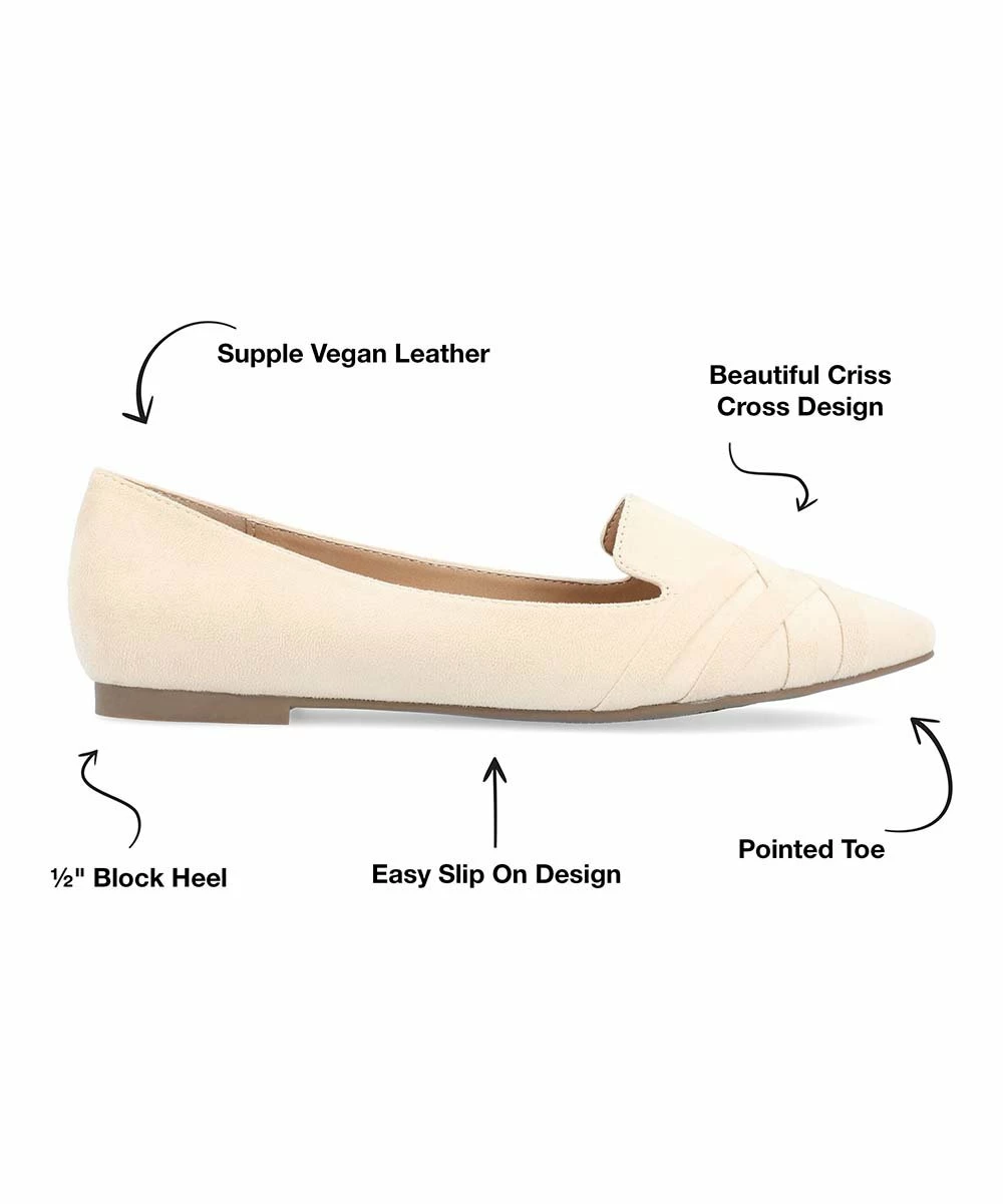 Opt for classic style with these ballet flats designed with a crisscross detail and pointed toe.