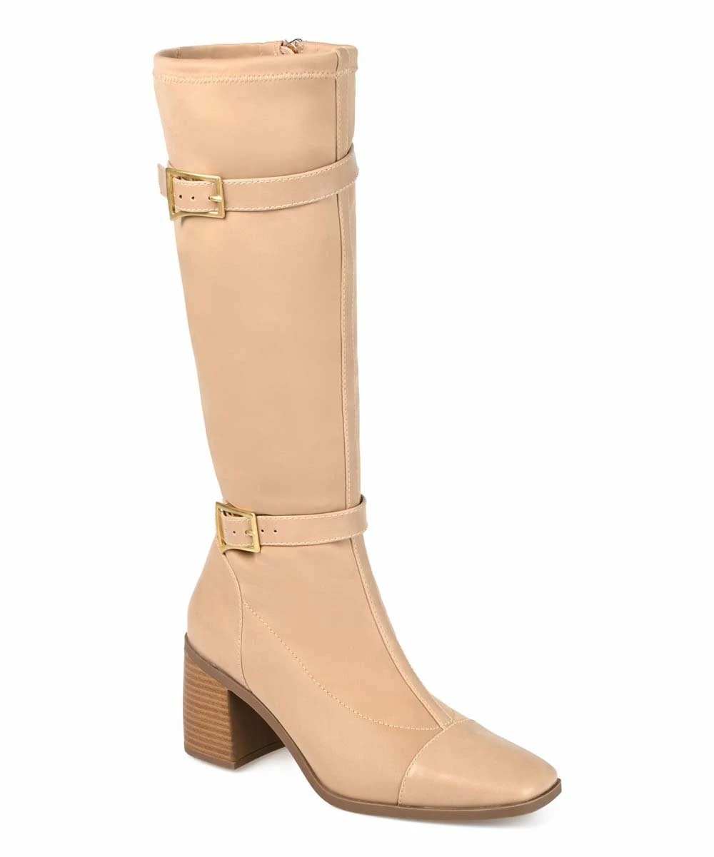 Opt for poised style in these sleek boots featuring buckle accents, a sturdy block heel and a zip closure that adds ease.