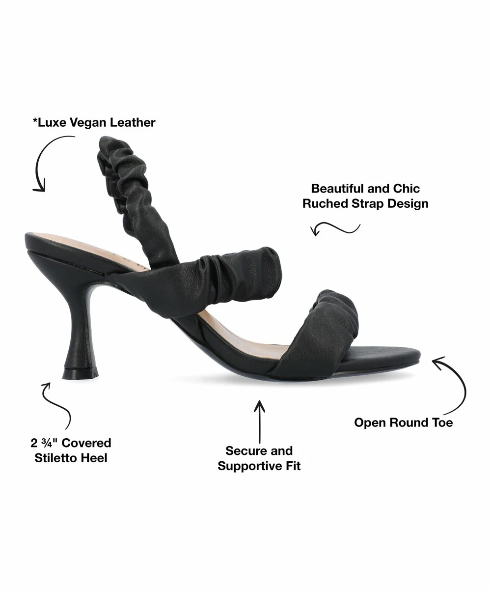 These slingback sandals feature round toes, high heels and elegant ruched straps.