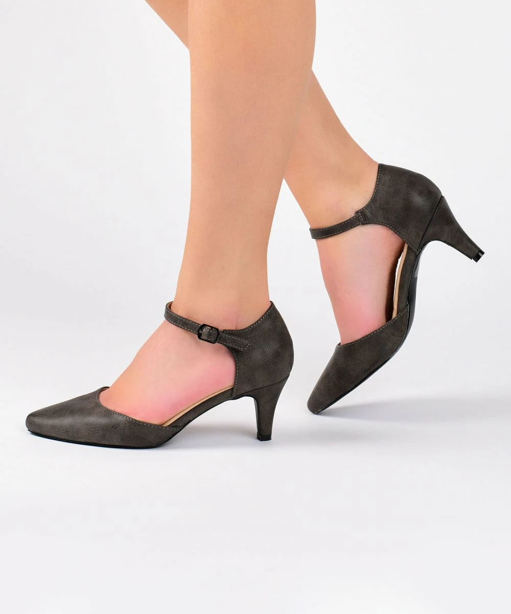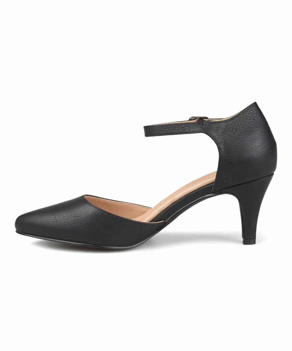 A pair of d’Orsay pumps featuring an almond toe and a cushioned insole. Vegan leather.