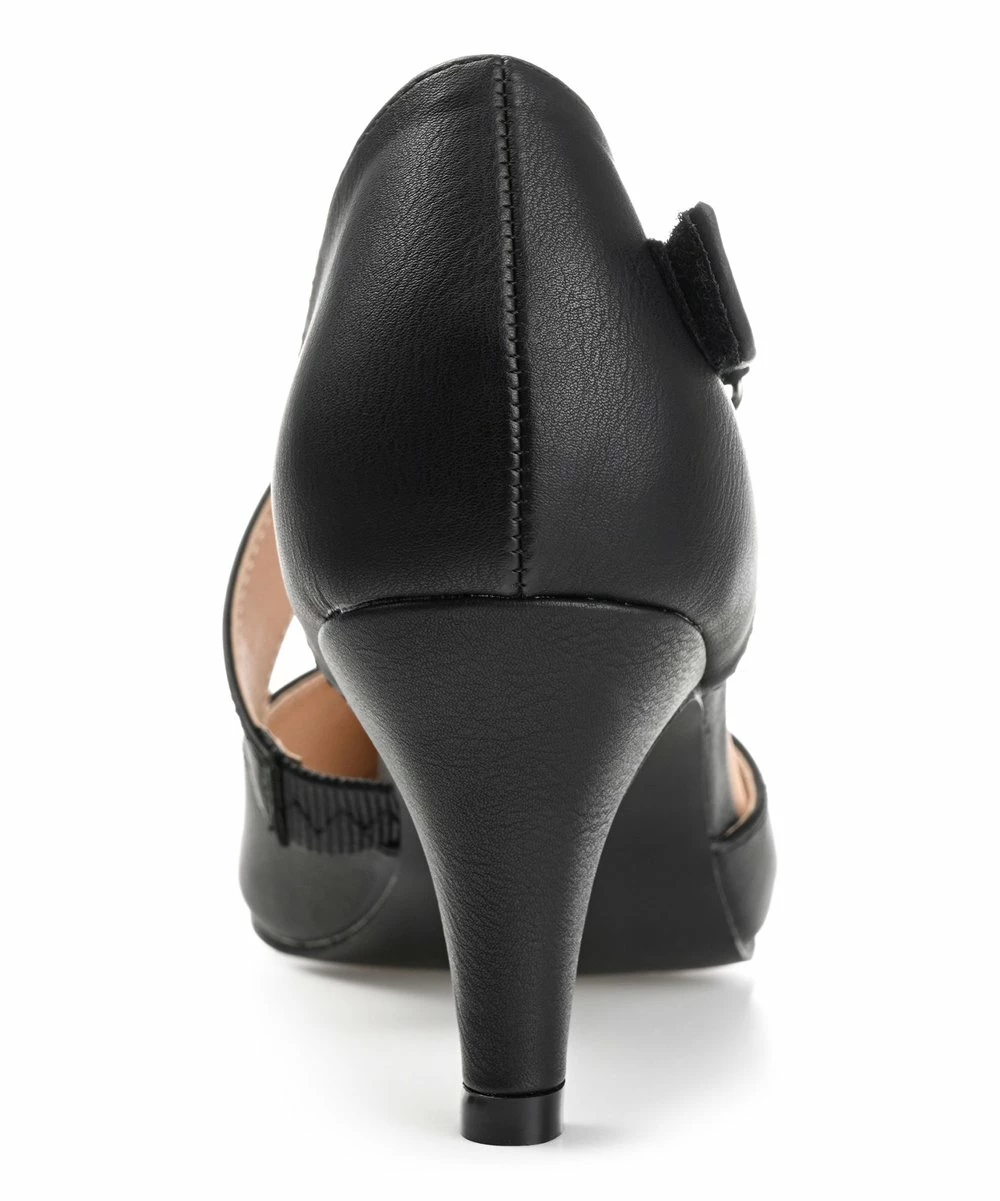 Complete your look with these pointed-toe pumps featuring a crossed strap and cushioned insoles. Vegan leather construction.