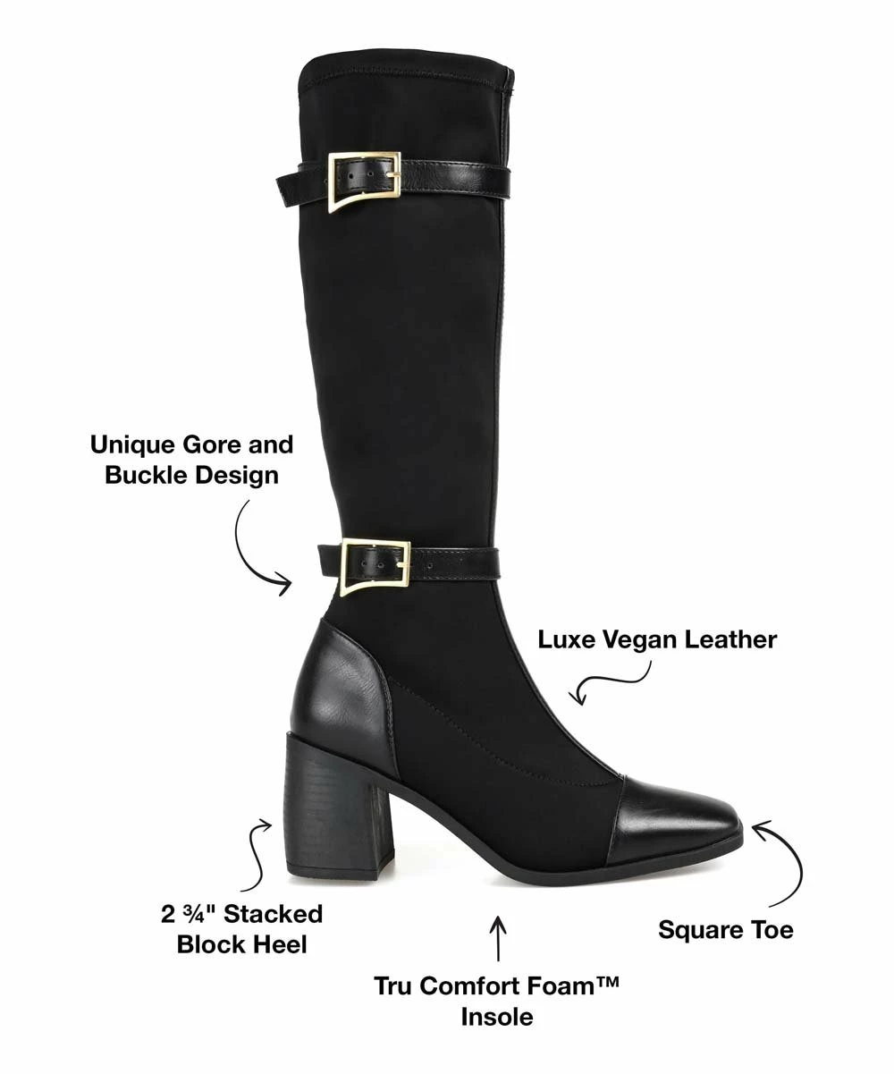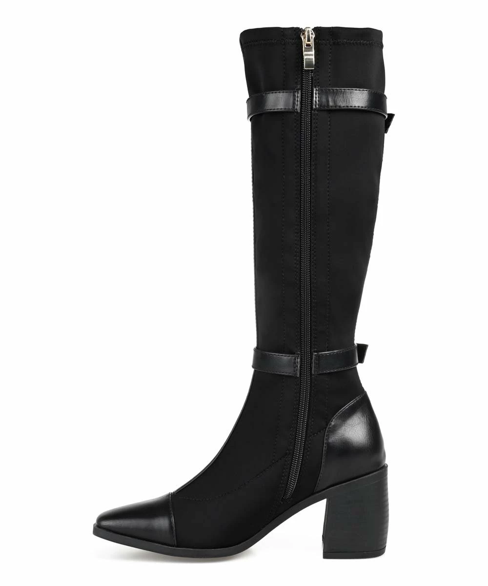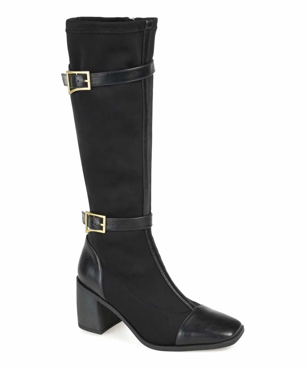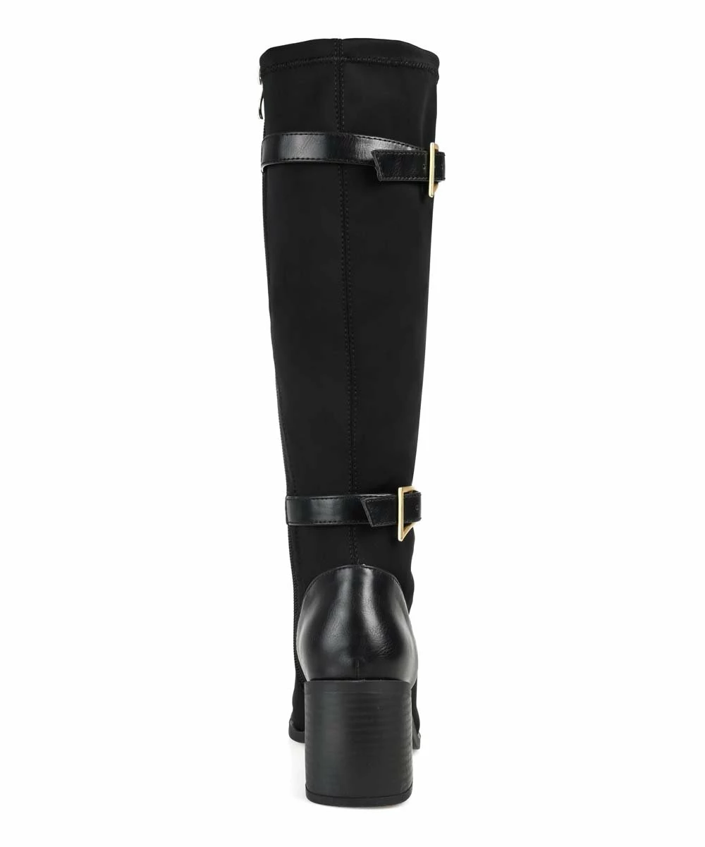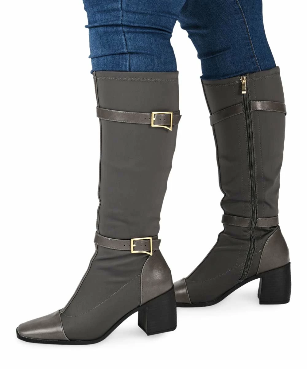 Opt for poised style in these sleek boots featuring buckle accents, a sturdy block heel and a zip closure that adds ease.