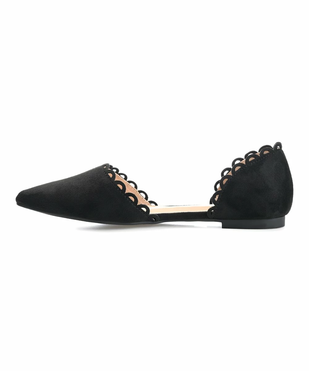 A pair of d’Orsay flats featuring looped edges and a faux-suede finish.