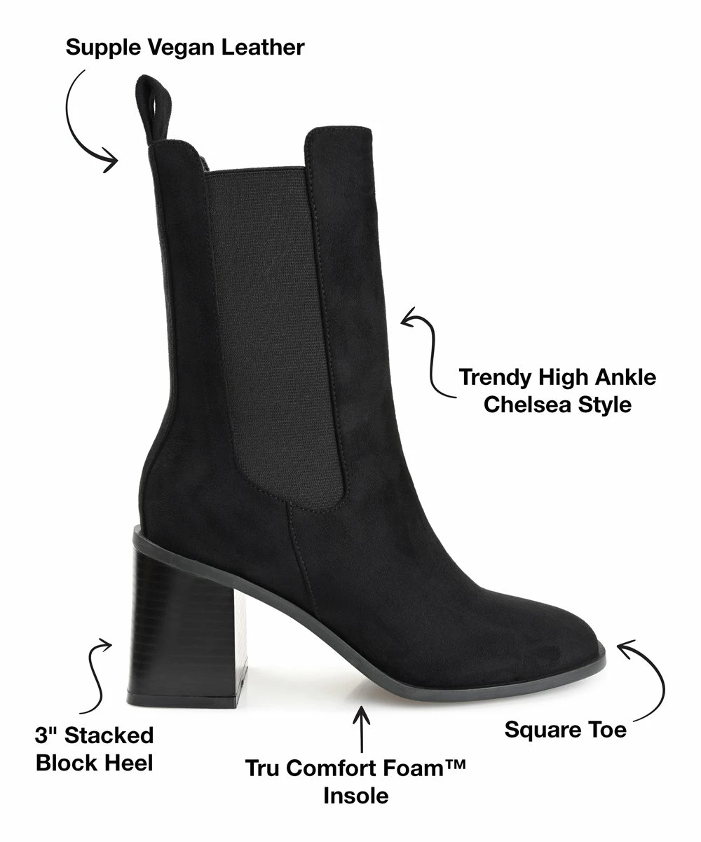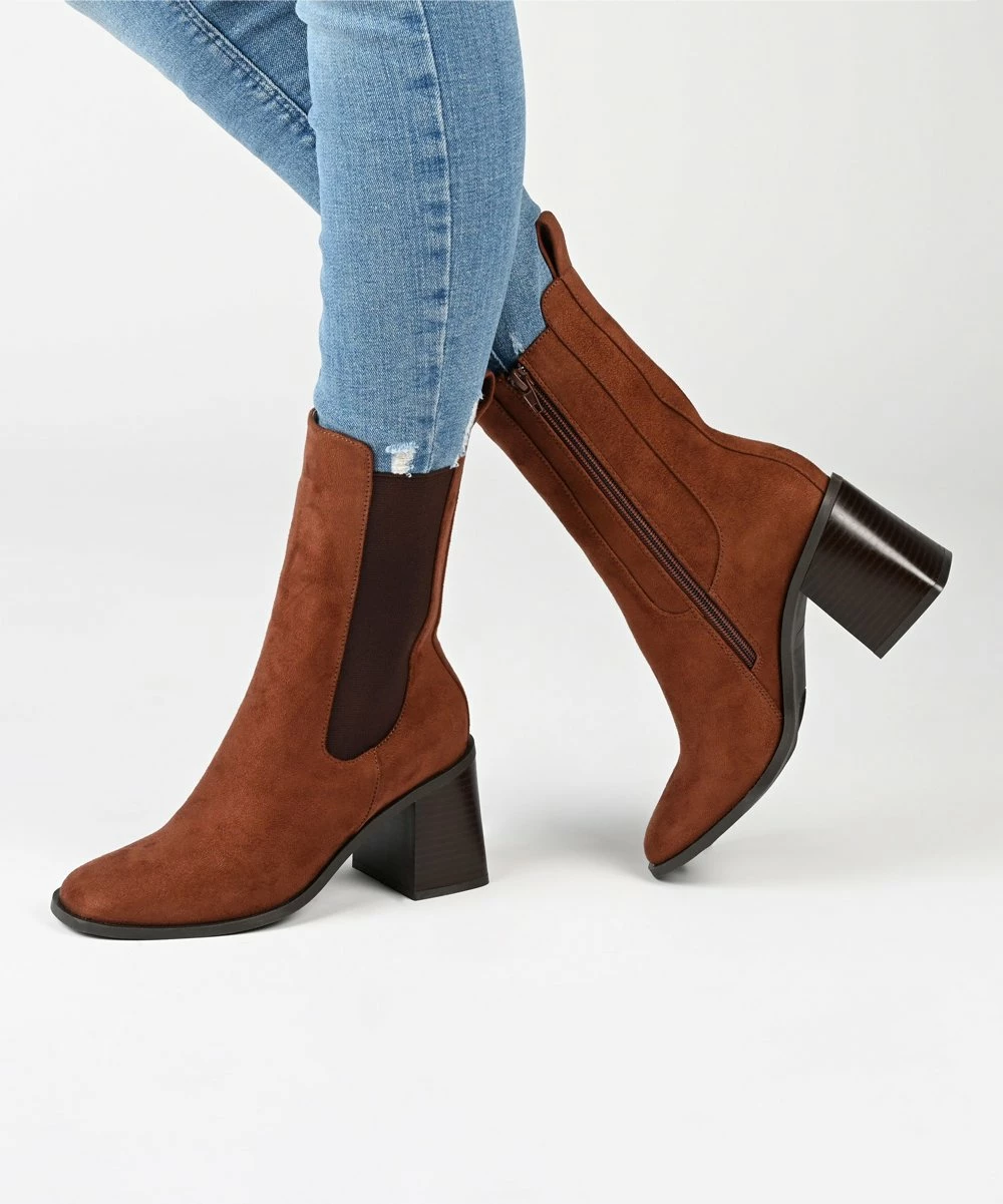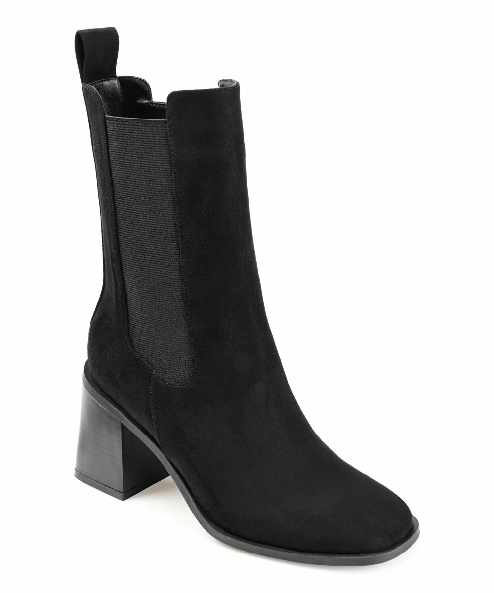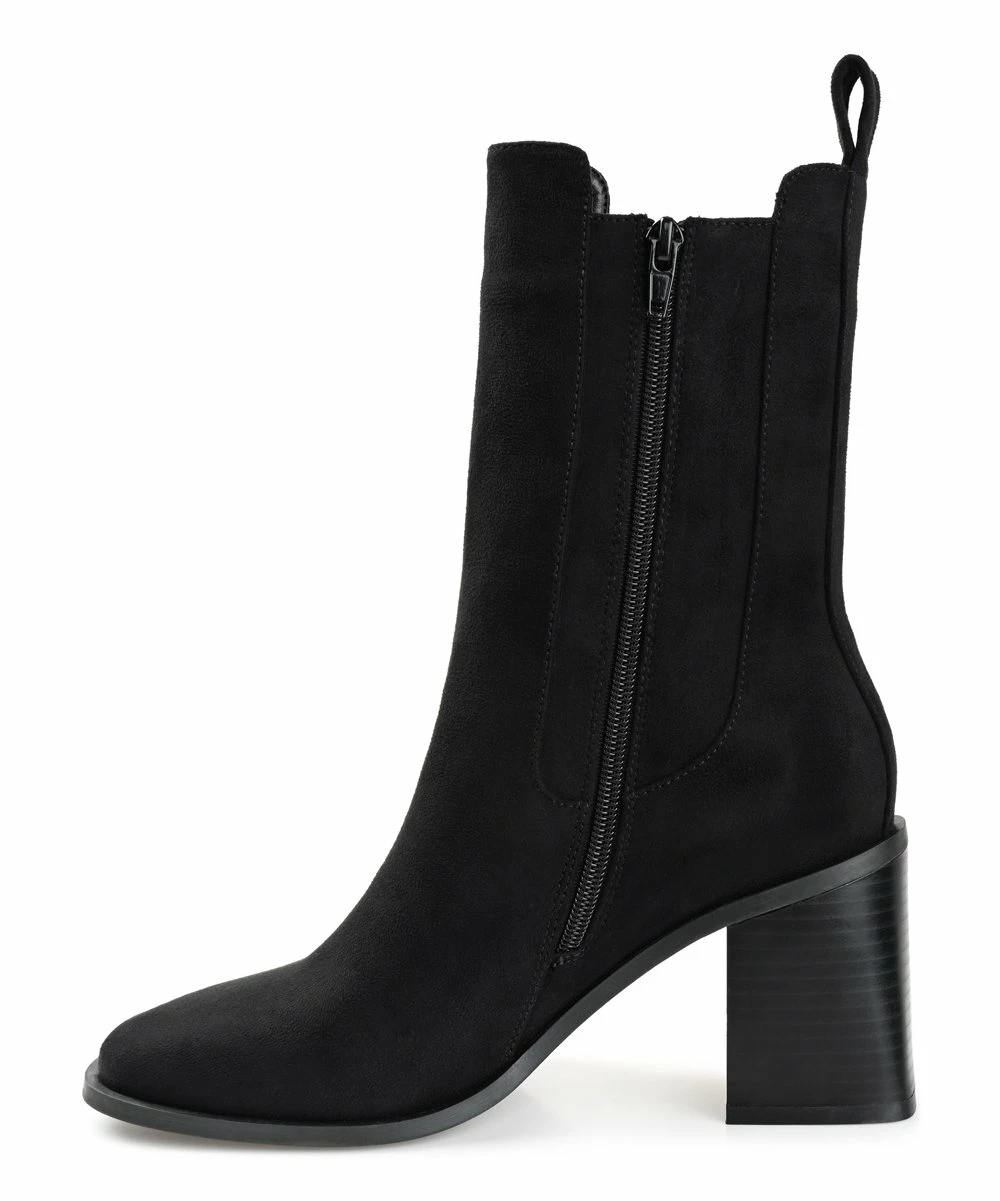 A new twist on a classic, this mid-shaft bootie features an elasticated gusset and a block heel.