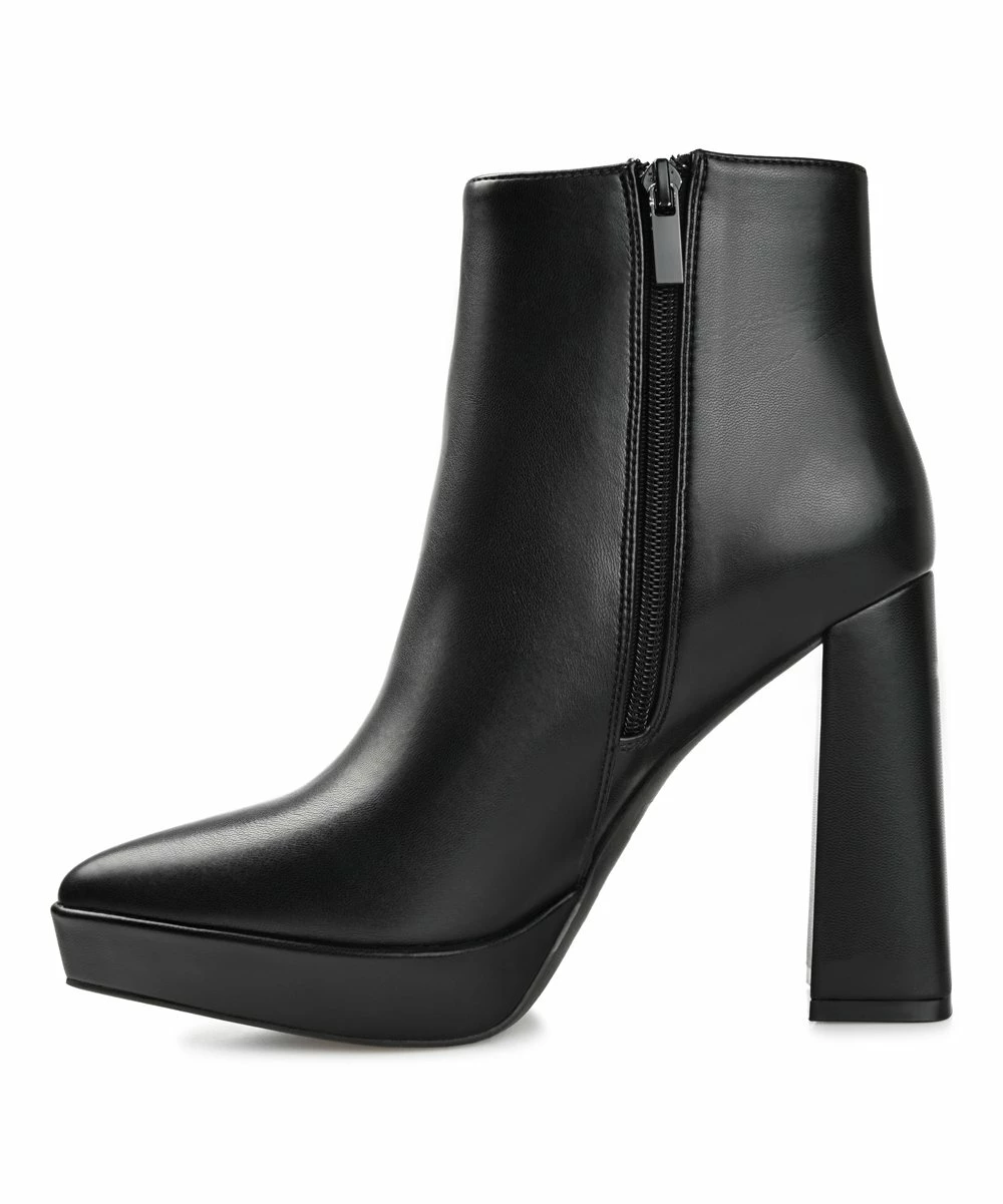 A wardrobe classic, this pointed-toe bootie features a block heel.