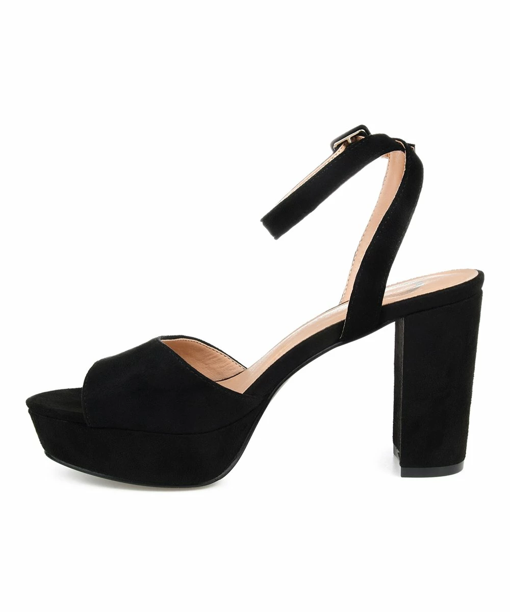Add a classic element to your collection with these open-toe pumps sporting a faux-suede finish.