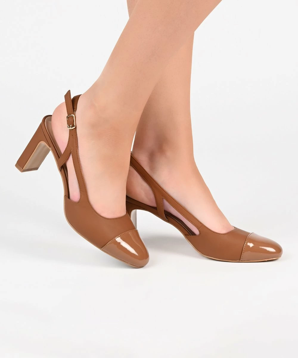 Bring classic appeal to your collection with these slingbacks featuring a cap toe silhouette and side cutout details.