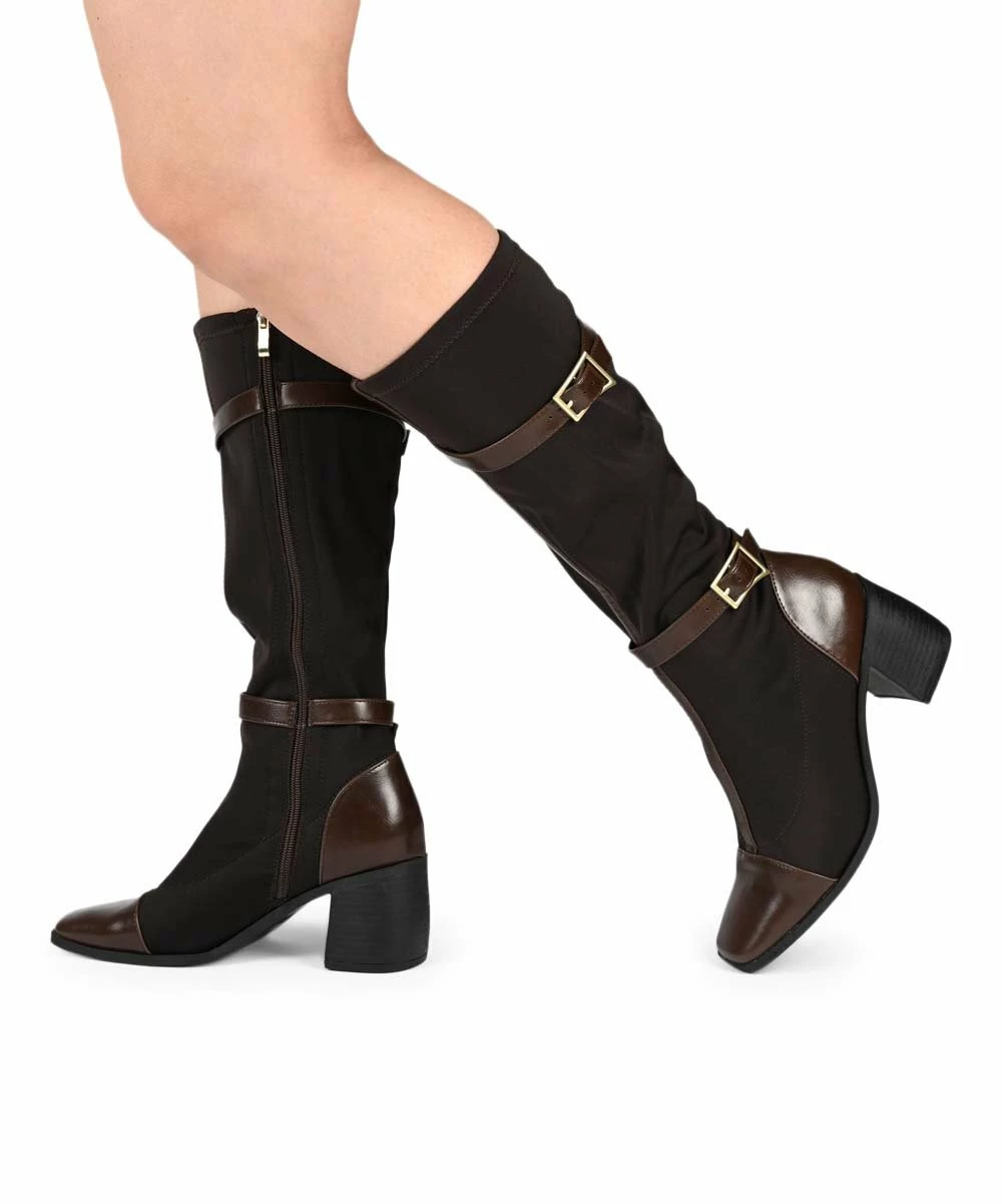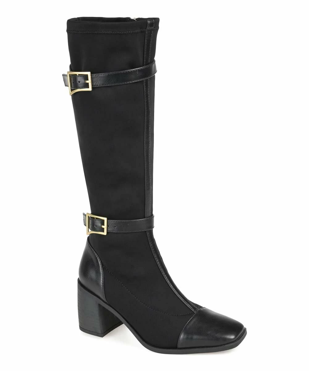 Journee Collection | Black Wide-Calf Strap-Accent Gaibree Boot – Women