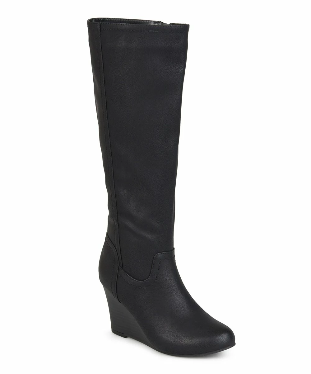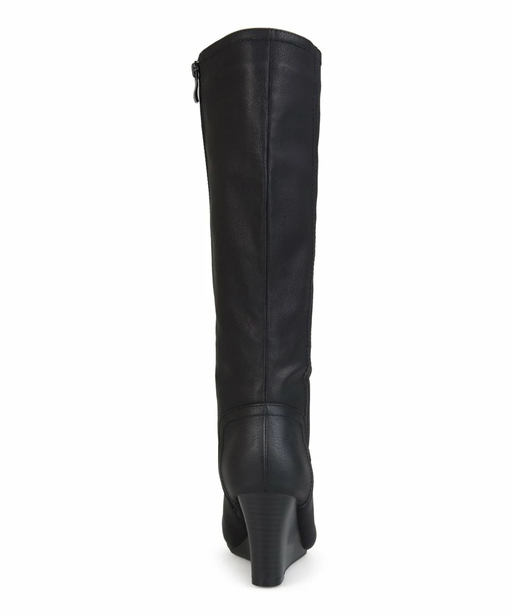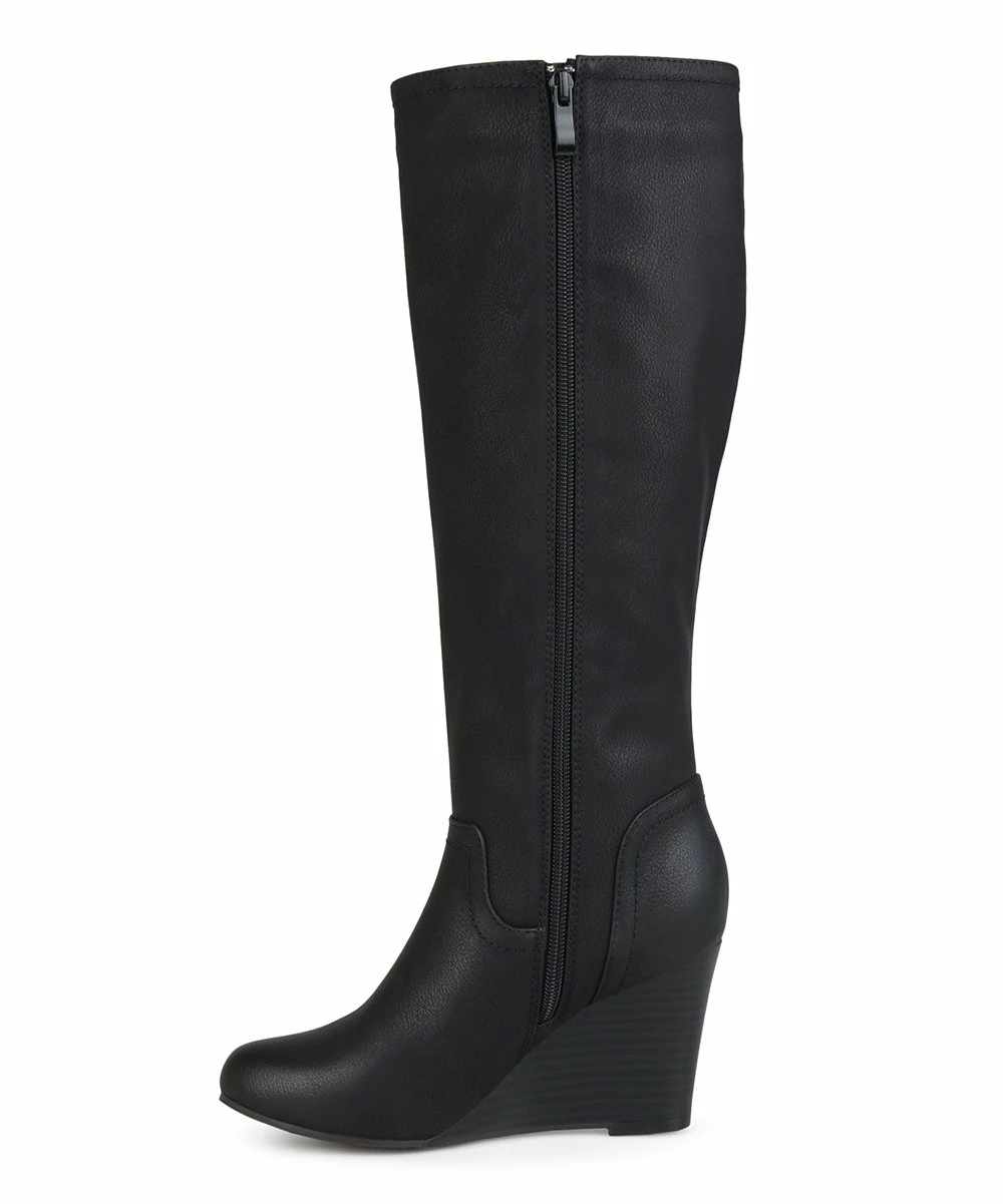 Streamlined wedge boot featuring an inside zip and extra-wide calf for added comfort.