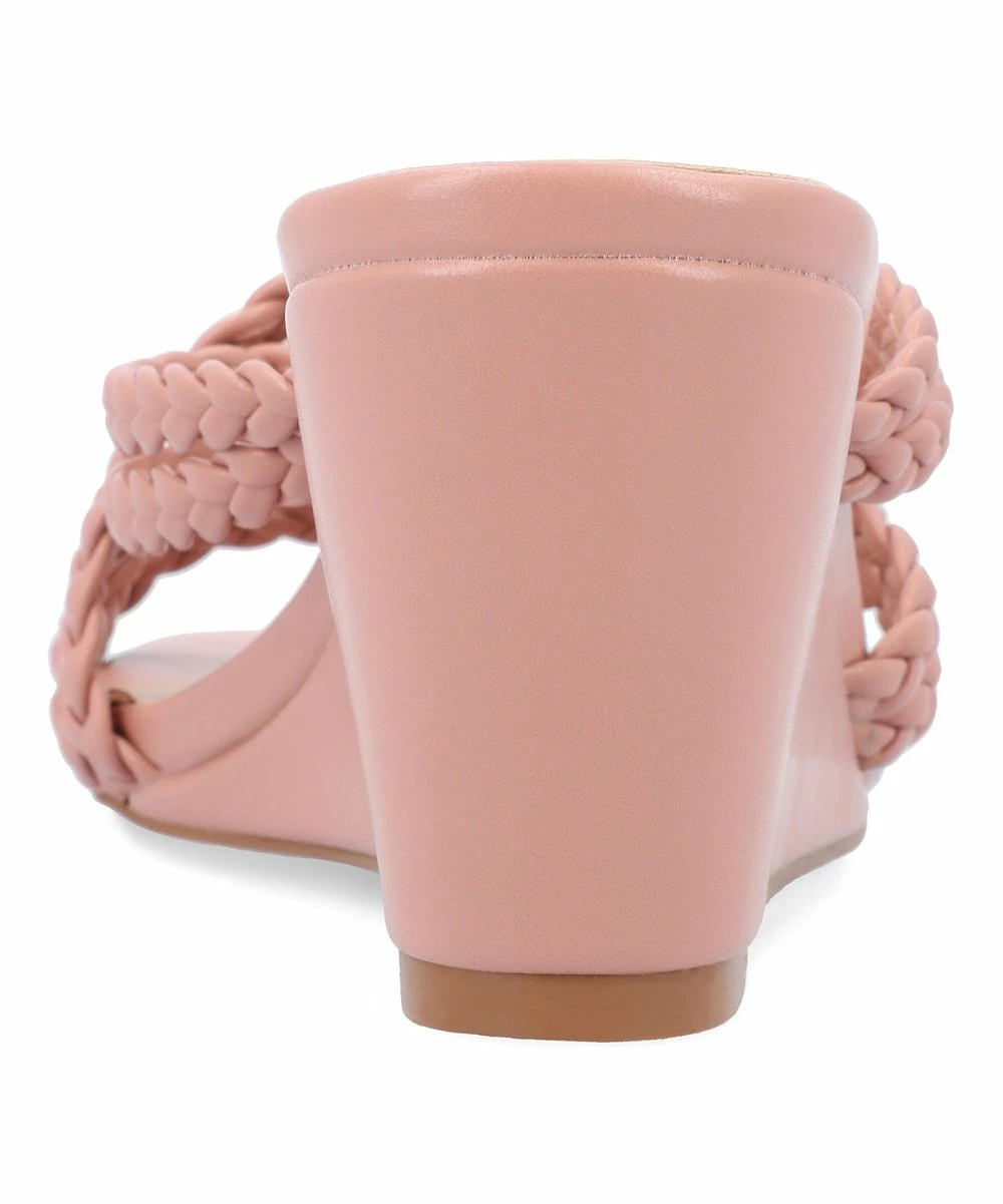 Wedge with crisscrossed braided straps and a square toe. The slip-on style keeps things simple.