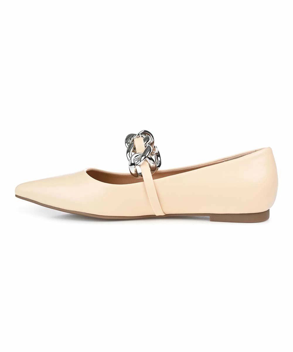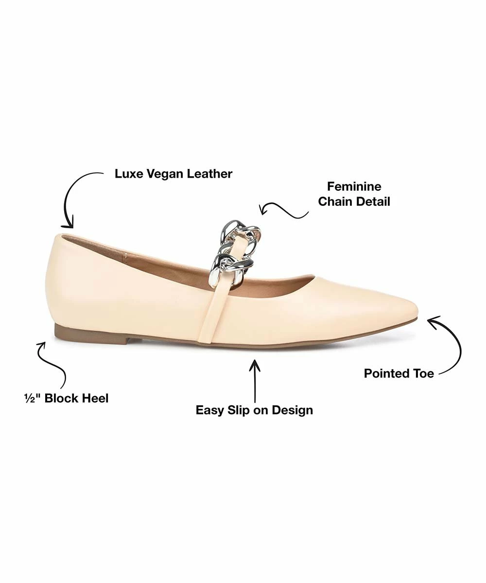 A chain accent elevates these ballet flats designed with a pointed toe and comfortable padded insole.