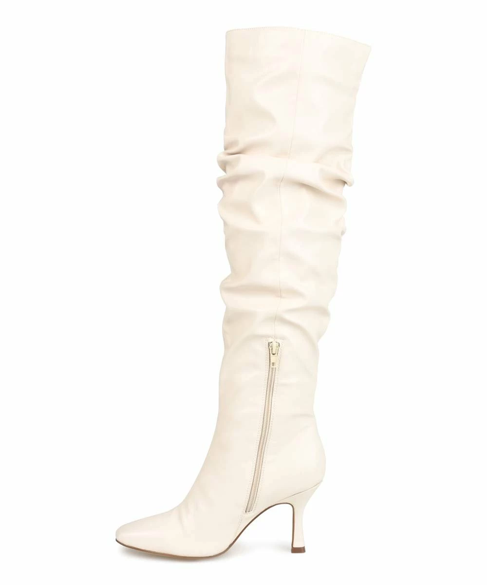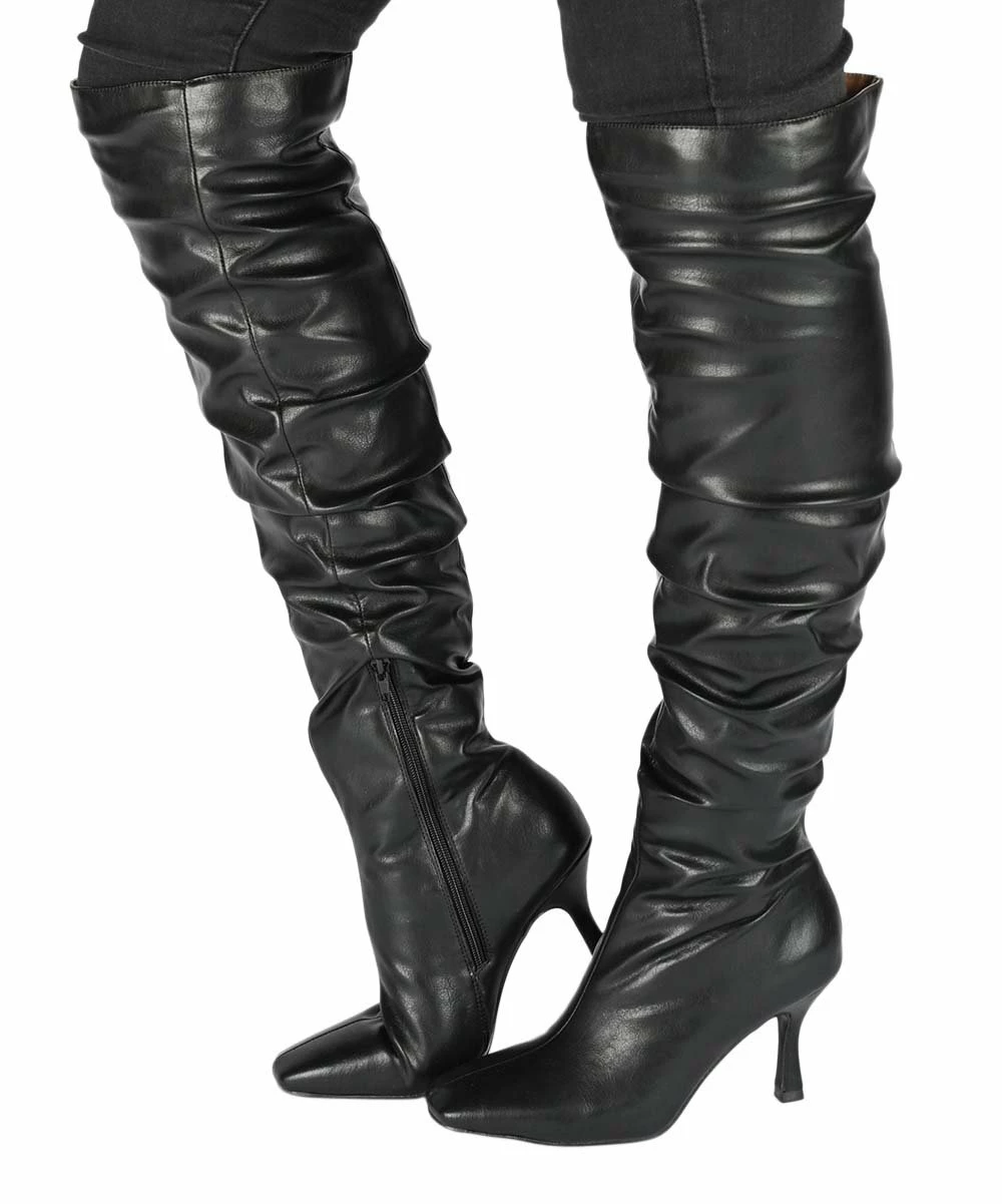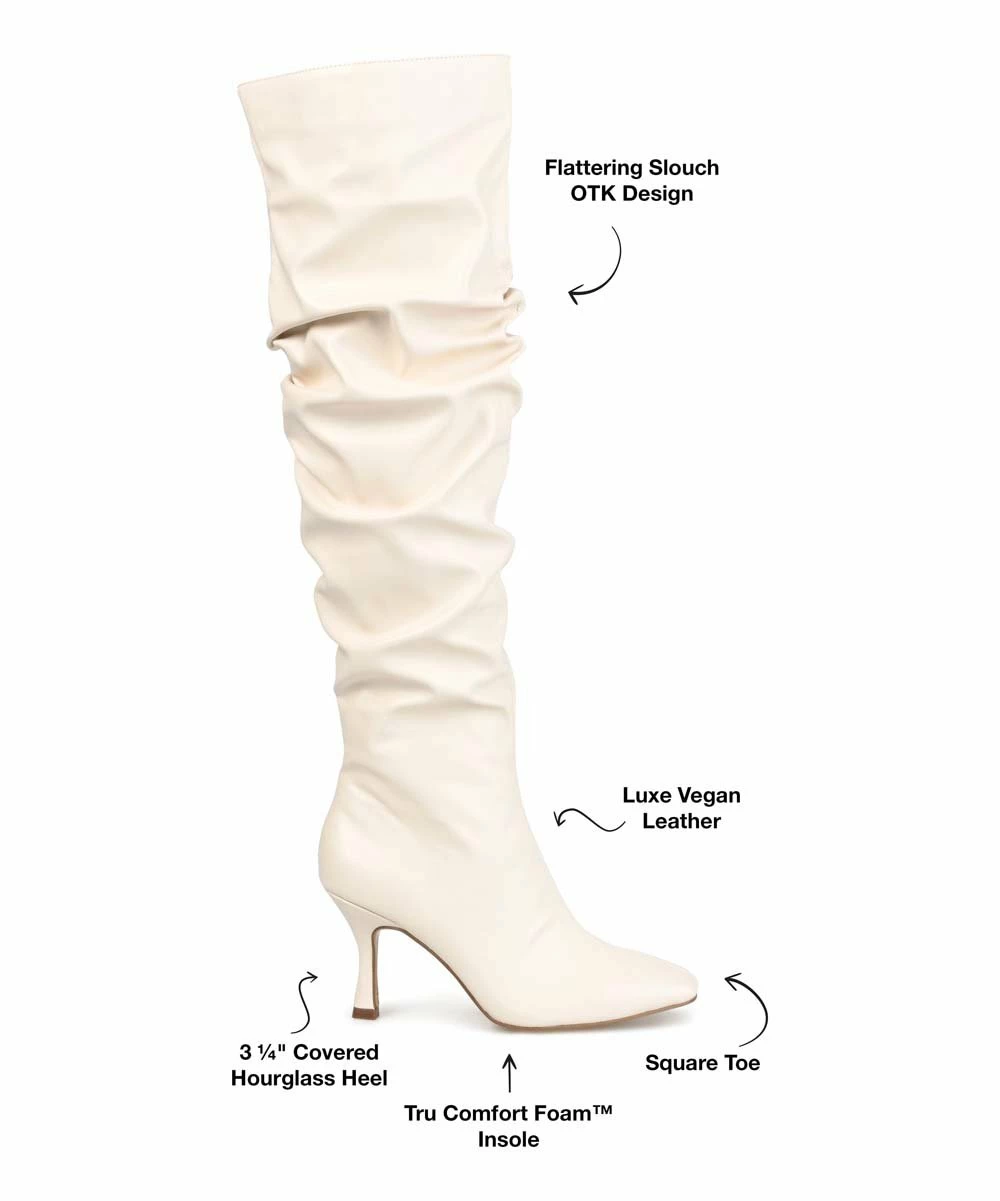 Stand out in these over-the-knee boots featuring a slouchy look and a graceful hourglass heel for a boost of height.