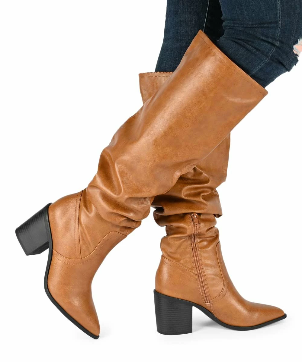Opt for sleek style in these boots featuring slouchy style and a block heel to take your look to a new level.