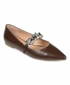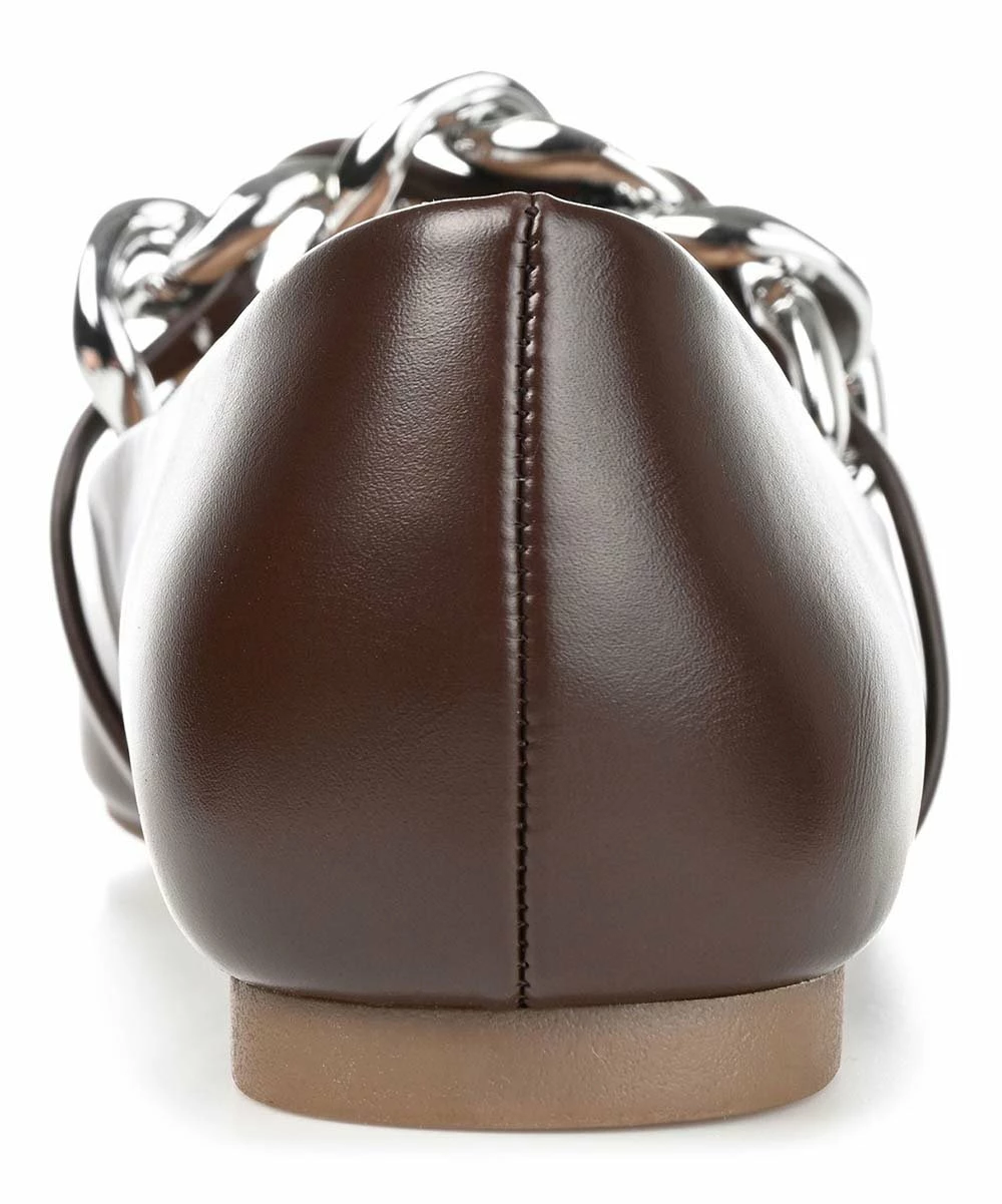 A chain accent elevates these ballet flats designed with a pointed toe and comfortable padded insole.