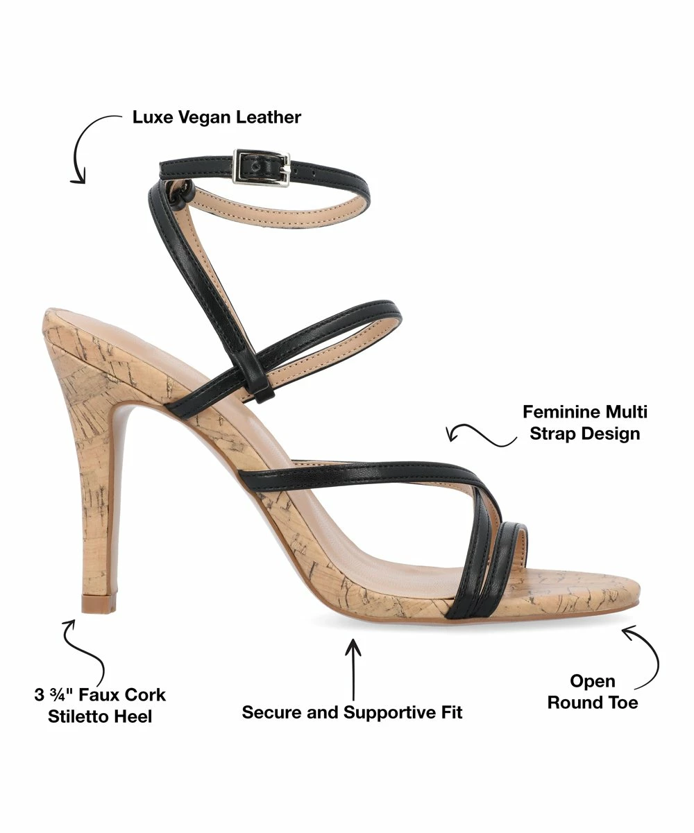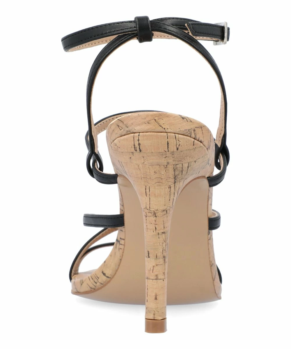 This stiletto sandal features a round toe, a padded insole and a chic strappy style with a buckle at the ankle.