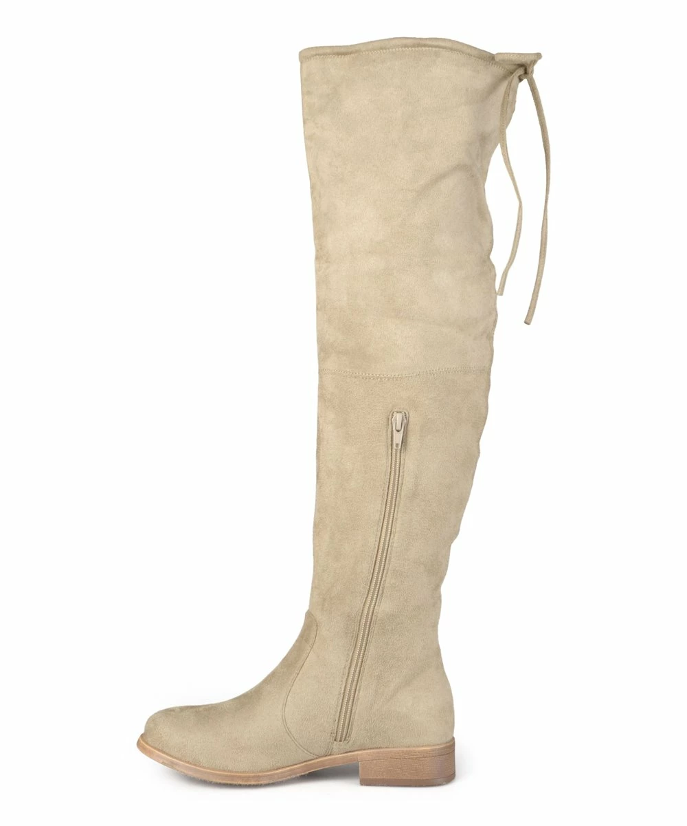Slouchy boots with a sophisticated over-the-knee silhouette and a tie in back.