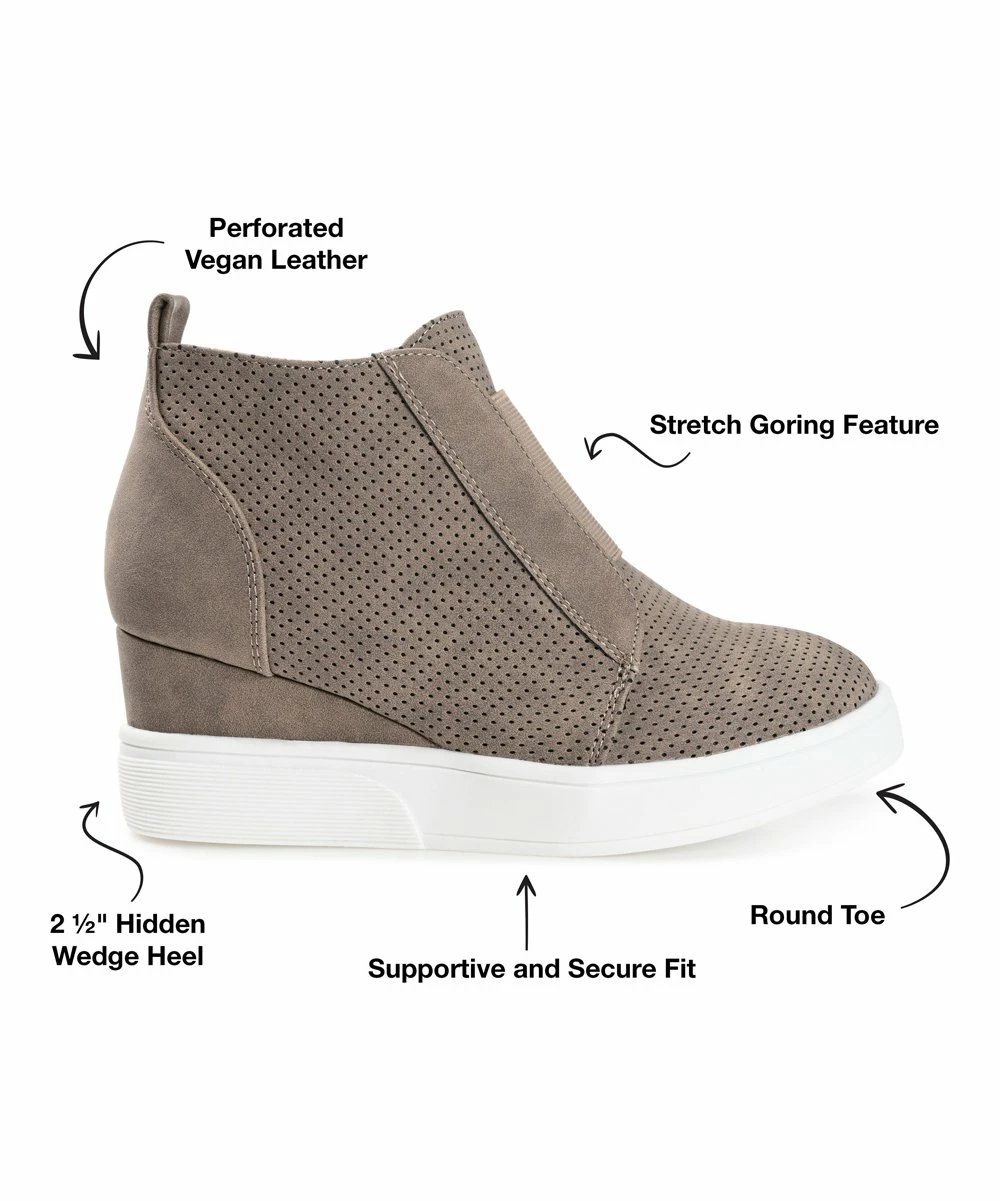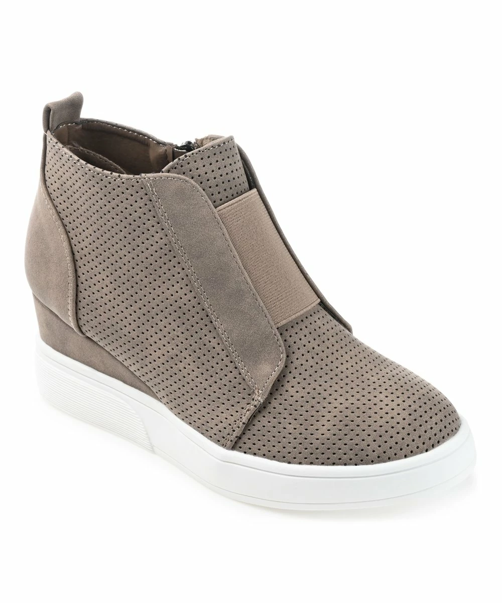 Journee Collection | Taupe Pinhole Clara Wedge Sneaker – Women