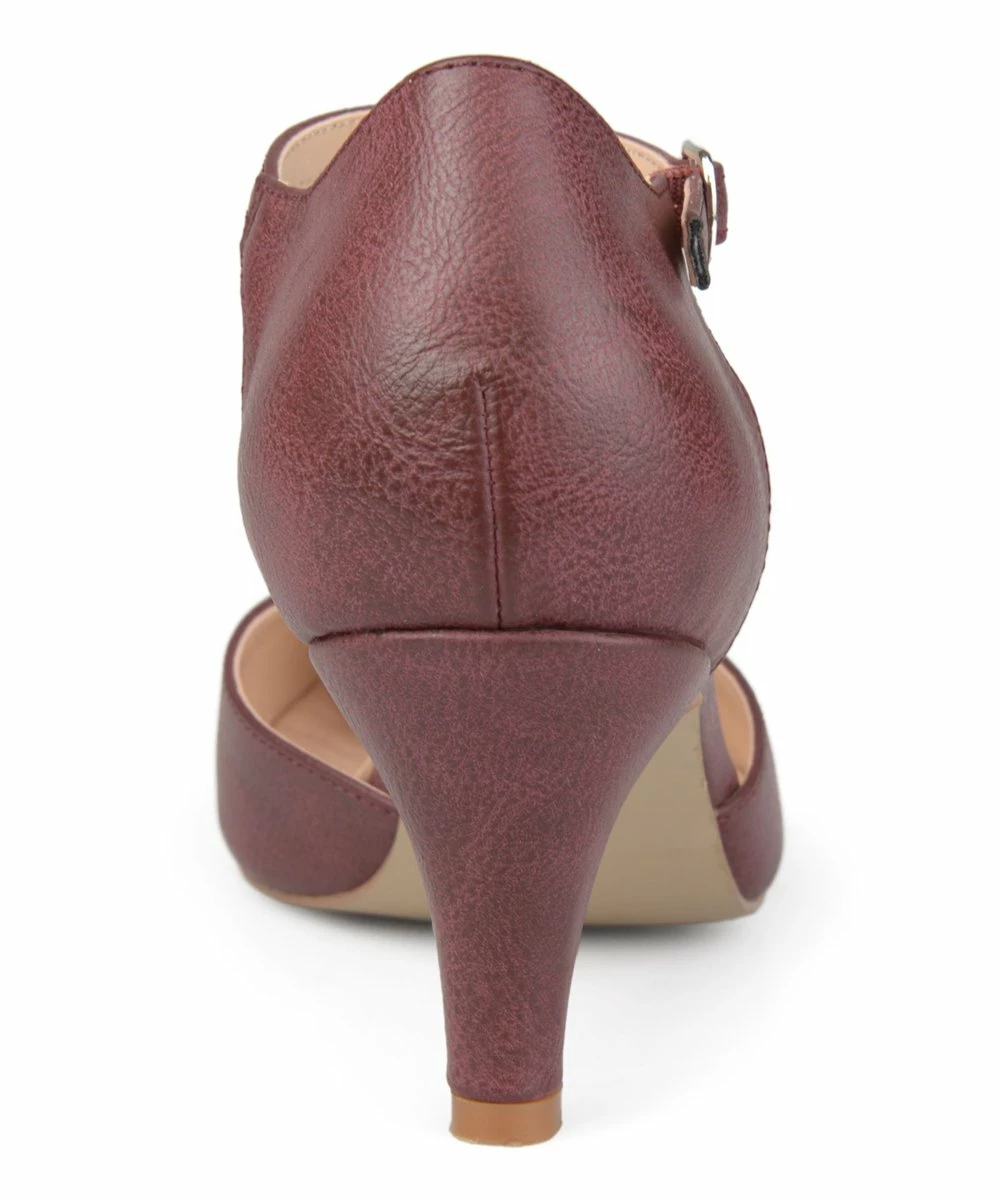 A pair of d’Orsay pumps featuring an almond toe and a cushioned insole. Vegan leather.